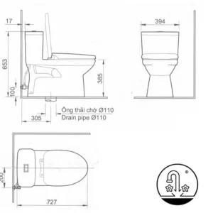 Bản vẽ kỹ thuật bồn cầu khối 1 INAX AC 969VN