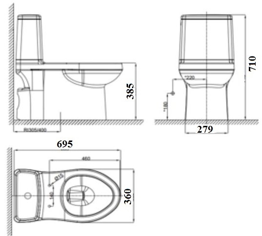 Bản vẽ bồn cầu nắp điện tử American VF1858PR