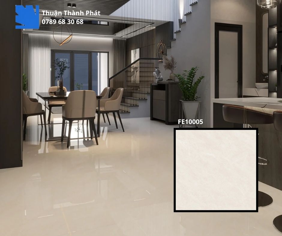 Bề mặt bóng mịn của FE10005 giúp việc lau chùi trở nên đơn giản và nhanh chóng, chống bám bẩn hiệu quả. Điều này giúp tiết kiệm thời gian và công sức bảo trì, giữ cho gạch luôn sáng bóng như mới.