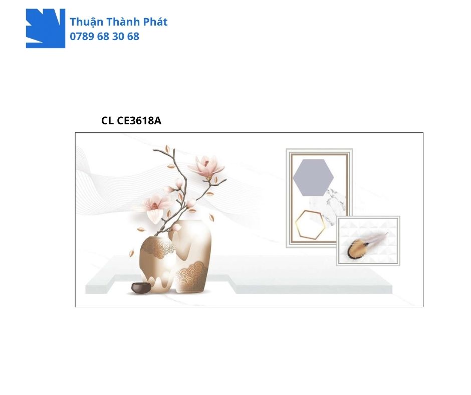Với họa tiết trang trí cầu kỳ và màu trắng/kem tinh tế, Gạch Ốp Lát Viglacera CL CE3618A giúp tường trở thành tâm điểm nghệ thuật. Bình hoa phối hoa đào mềm mại tạo cảm giác nhẹ nhàng, phù hợp làm điểm nhấn phòng khách, sảnh, hay sau kệ tivi.